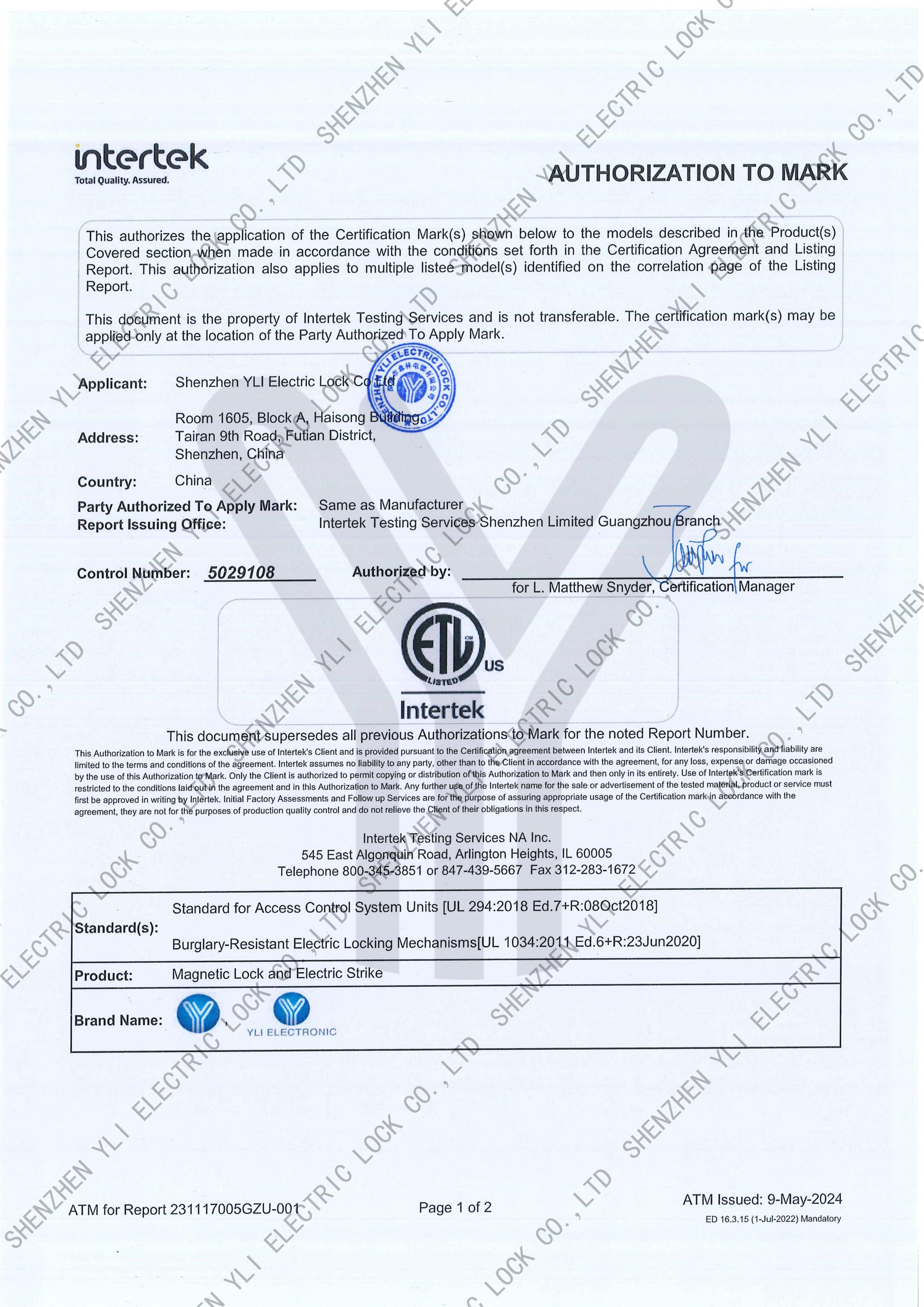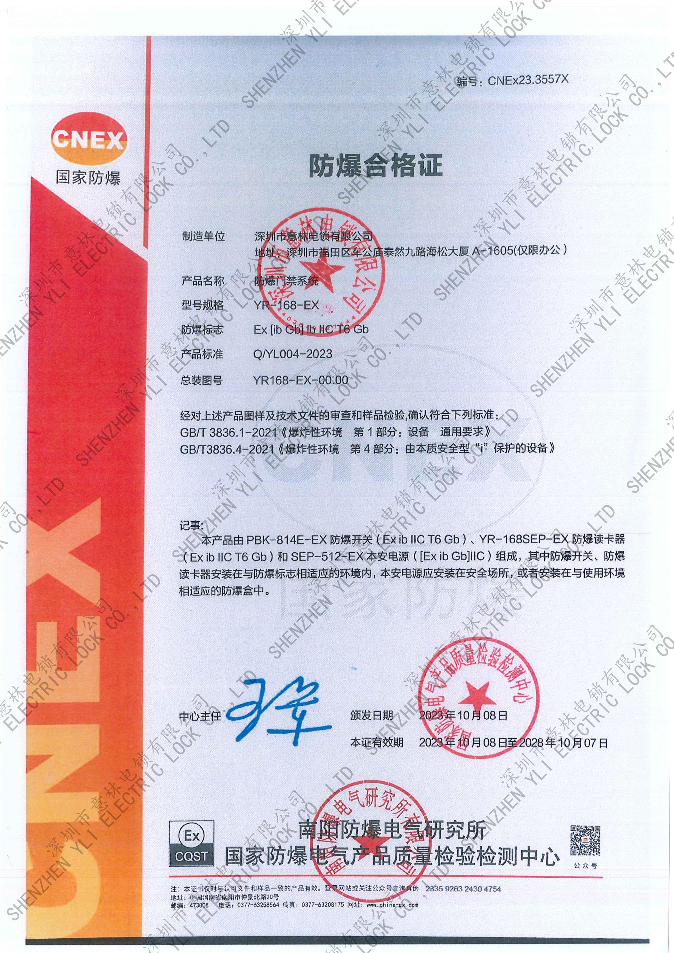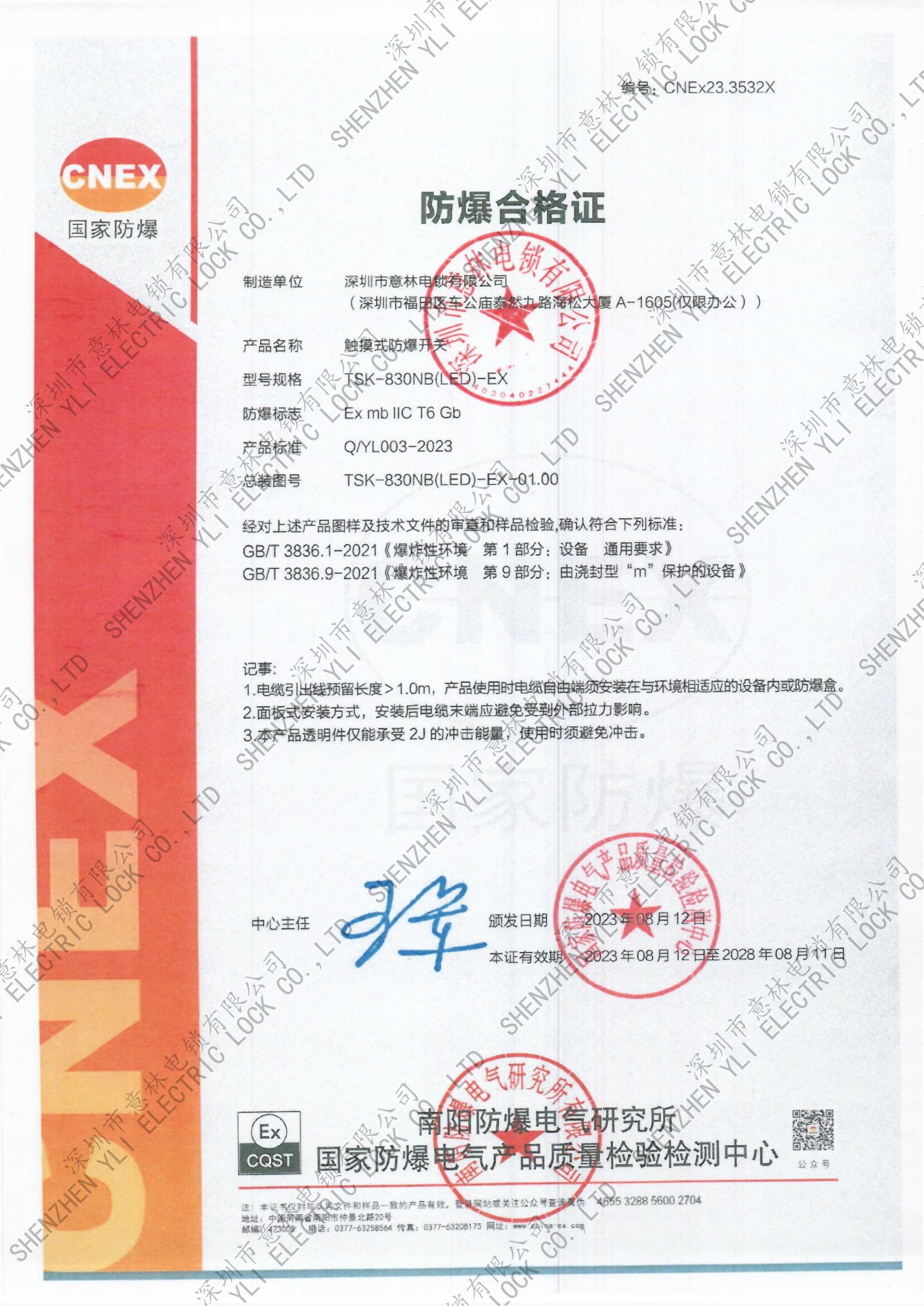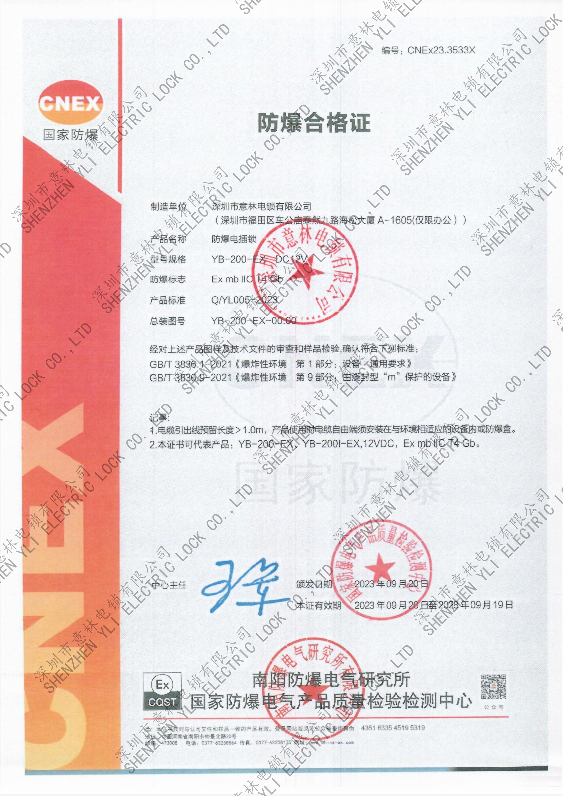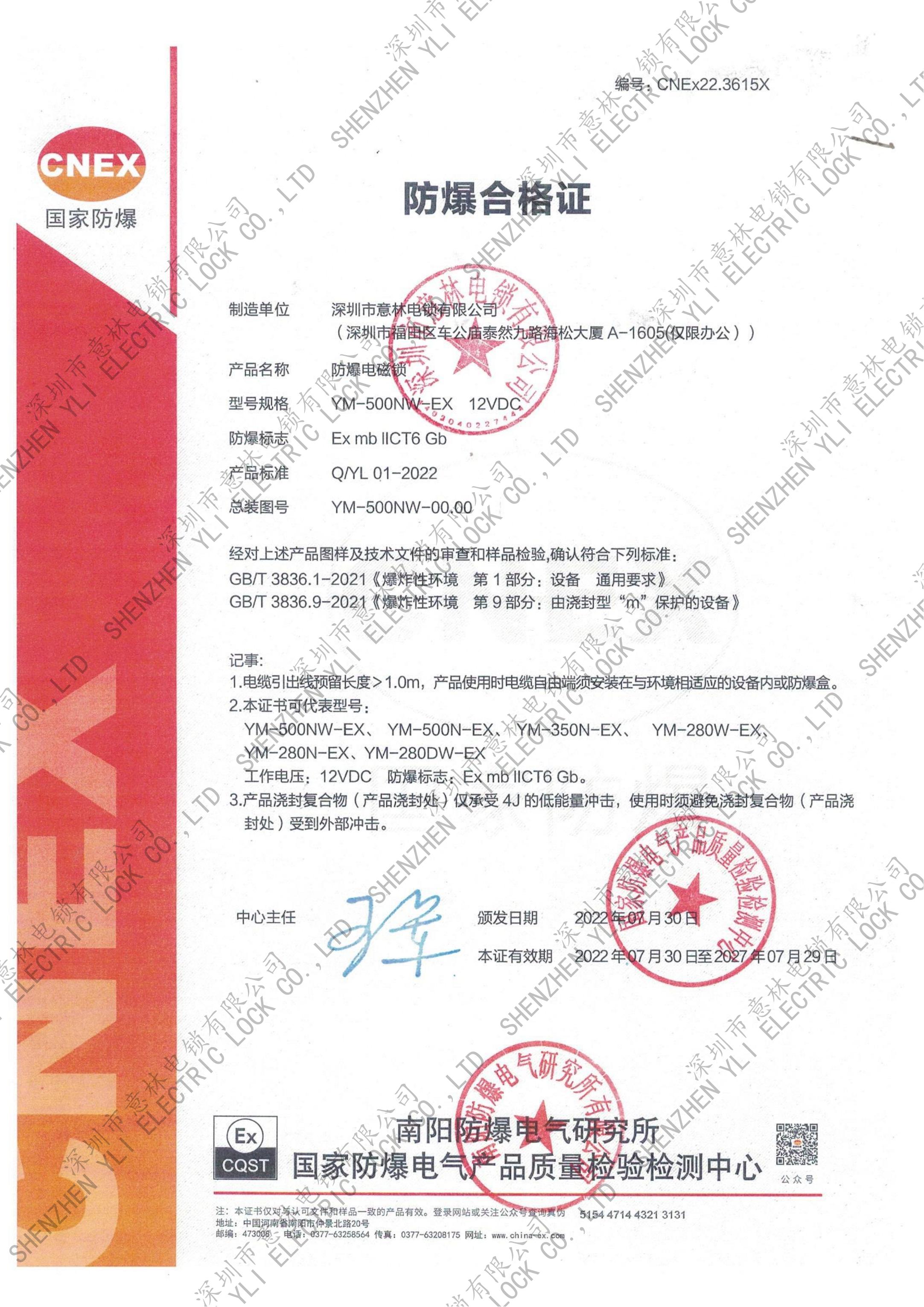 YB-500A_B、YB-500I、 YB-500U型號(hào)電插鎖CE認(rèn)證