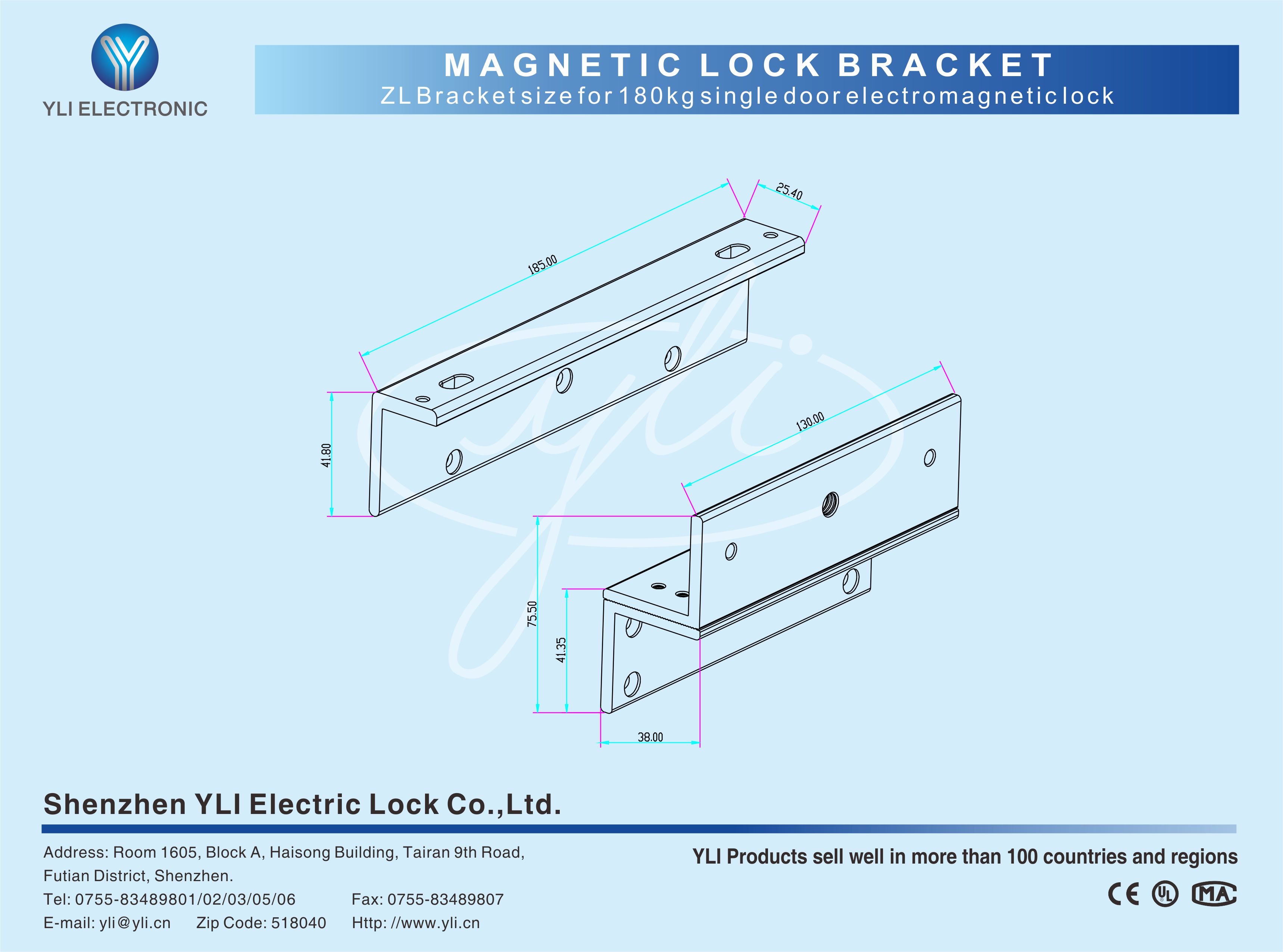 Dimension  L:185x41.8x25.4(mm)     Z:130x38x38(mm) (MBK-180NZL)