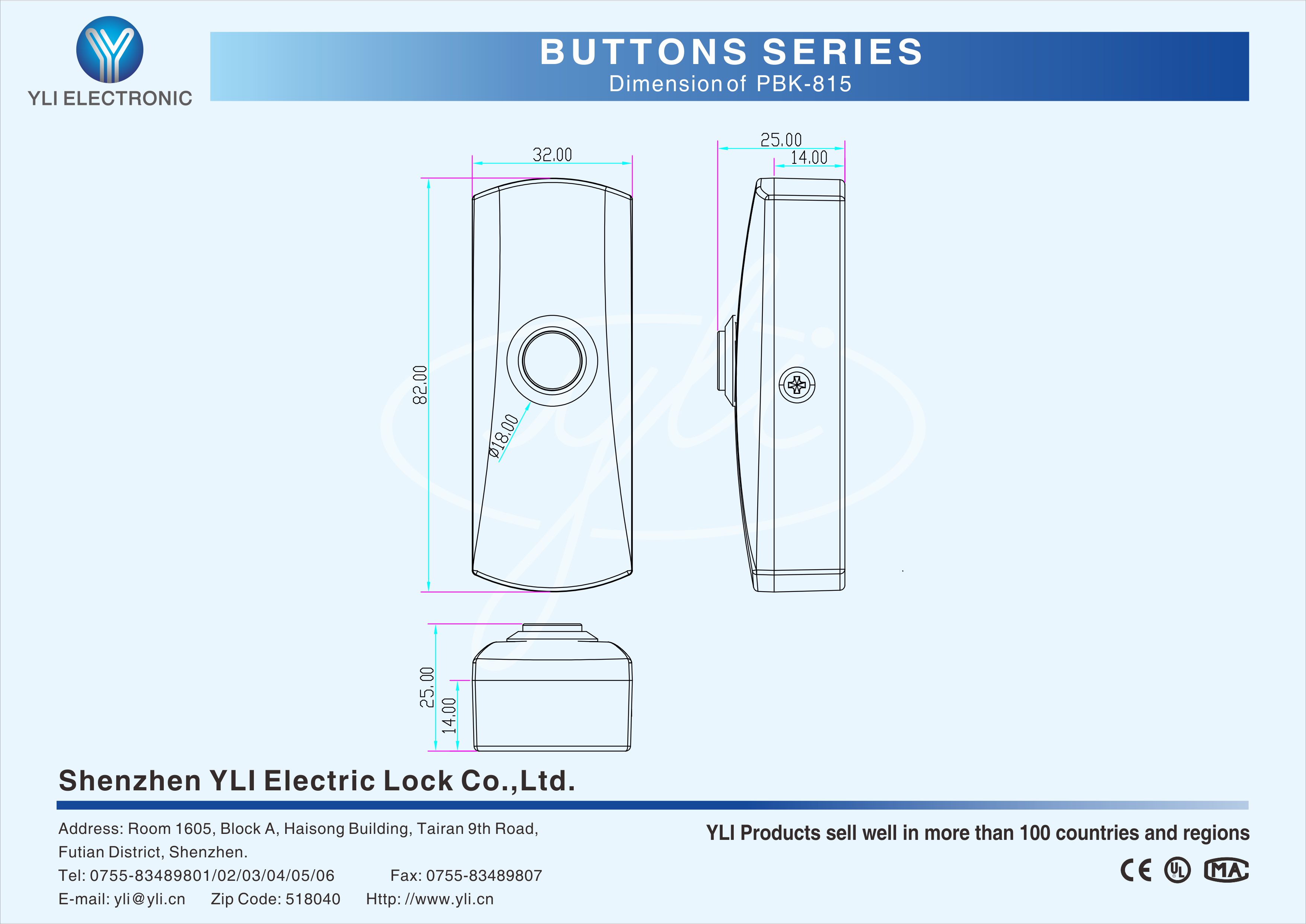 PBK-815 is a door release button with back box in size of 83Lx32Wx25H(mm),which is the most common and the most frequently used in the access control systems.
