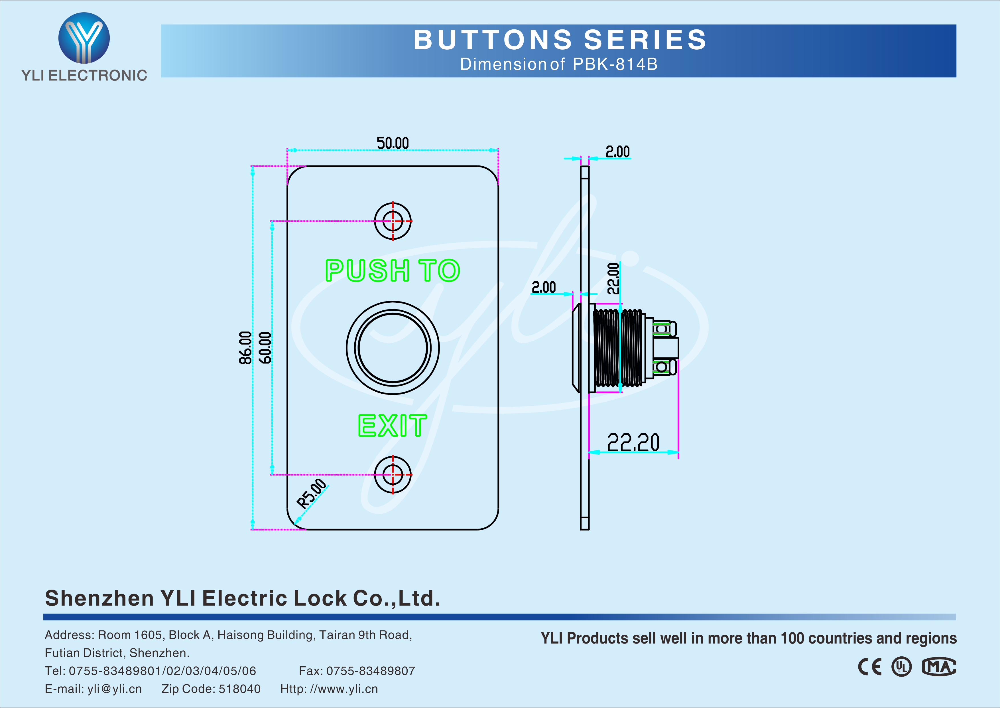 PBK-814B is a stainless steel door release button with size of 86Lx50Wx31H(mm), which is the most common and the most frequently used in the access control systems.