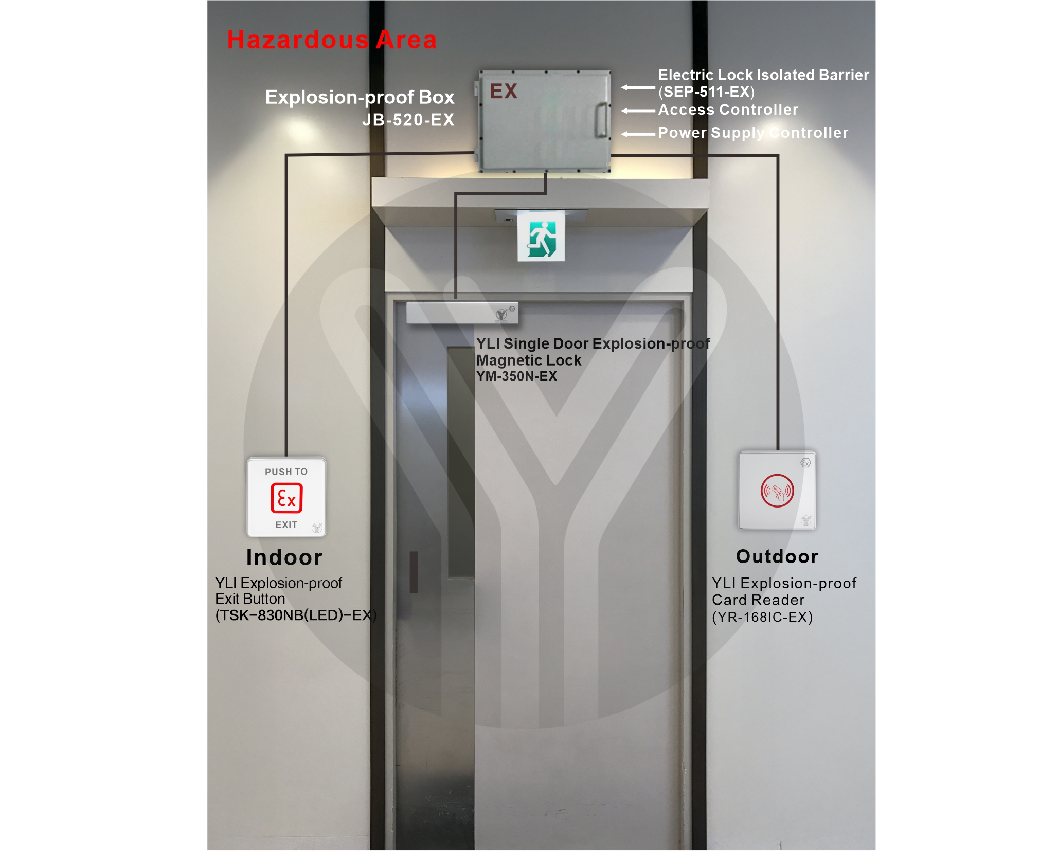 Explosion-proof magnetic lock is a kind of intrinsically safe electromagnetic lock that can be used in inflammable and explosive gas environment. It has simple structure, easy installation and maintenance, wear resistance, high reliability, and can be unlocked by power failure to escape in case of danger. It is especially suitable for petrochemical and other inflammable and explosive places.The explosion-proof electromagnetic lock produced by YLI are designed and manufactured in accordance with the relevant provisions of EU regulations EN IEC 60079-0:2018, IEC 60079-11:2012, EN 61241-11:2006.