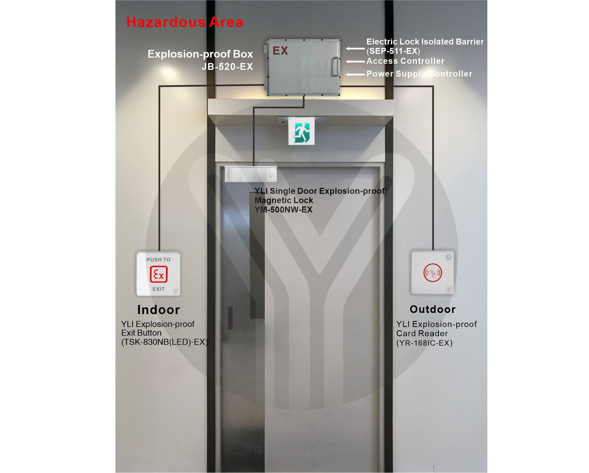Explosion-proof magnetic lock is a kind of intrinsically safe electromagnetic lock that can be used in inflammable and explosive gas environment. It has simple structure, easy installation and maintenance, wear resistance, high reliability, and can be unlocked by power failure to escape in case of danger. It is especially suitable for petrochemical and other inflammable and explosive places.The explosion-proof electromagnetic lock produced by YLI are designed and manufactured in accordance with the relevant provisions of EU regulations EN IEC 60079-0:2018, IEC 60079-11:2012, EN 61241-11:2006.