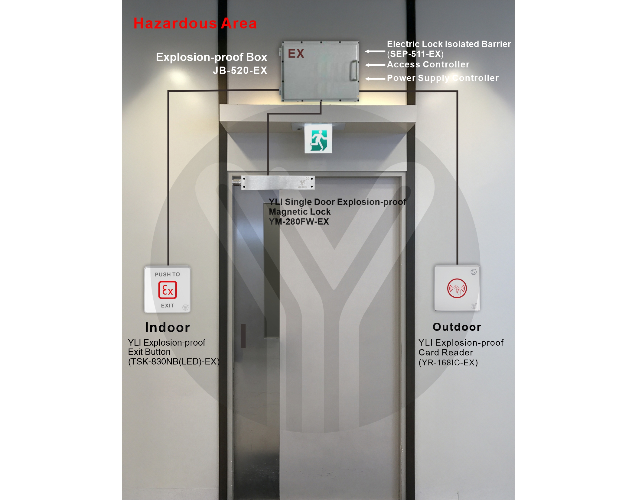 Explosion-proof magnetic lock is a kind of intrinsically safe electromagnetic lock that can be used in inflammable and explosive gas environment. It has simple structure, easy installation and maintenance, wear resistance, high reliability, and can be unlocked by power failure to escape in case of danger. It is especially suitable for petrochemical and other inflammable and explosive places.The explosion-proof electromagnetic lock produced by YLI are designed and manufactured in accordance with the relevant provisions of EU regulations EN IEC 60079-0:2018, IEC 60079-11:2012, EN 61241-11:2006.