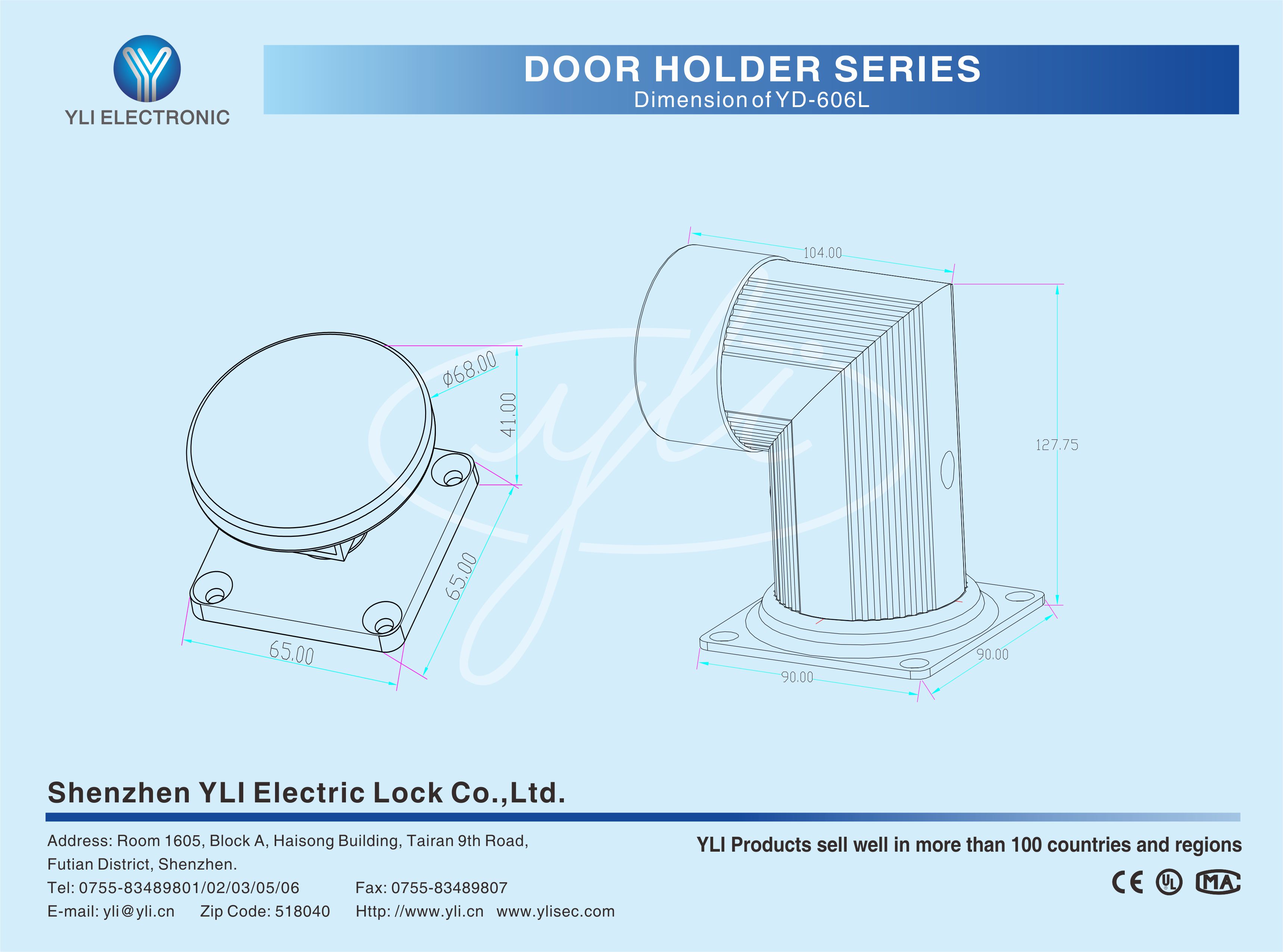 YD-606L is a floor mount door holder. Its holding force is 180KG. which adopts low power consumption, that makes it more environment friendly and more durable. With Manual?door?release?button.It’ll automatically?close?the?smoke?proof?door?when?fire?happens.It contains build-out release button for testing and build-in MOV which reverse current protection.