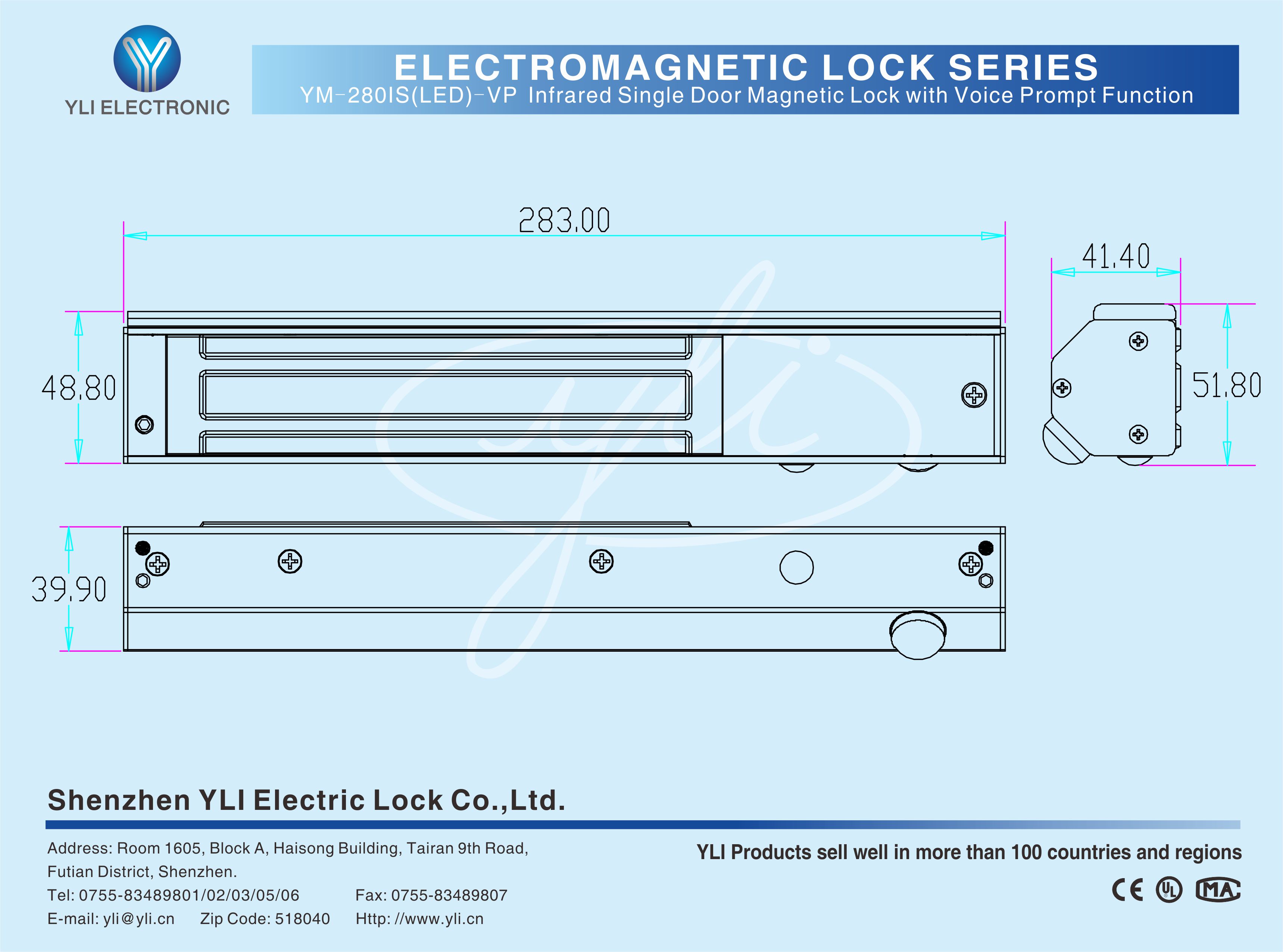 YM-280IS(LED)-VP is a new type of single door Electromagnetic Lock with the infrared induction automatic unlock function,Due to it can improve the efficiency of Access control automation effectively,it’s widely used in Emergency Exit of intelligent building,residential community, shopping center, airport, HSR station, subway station, the grand theatre and so on.