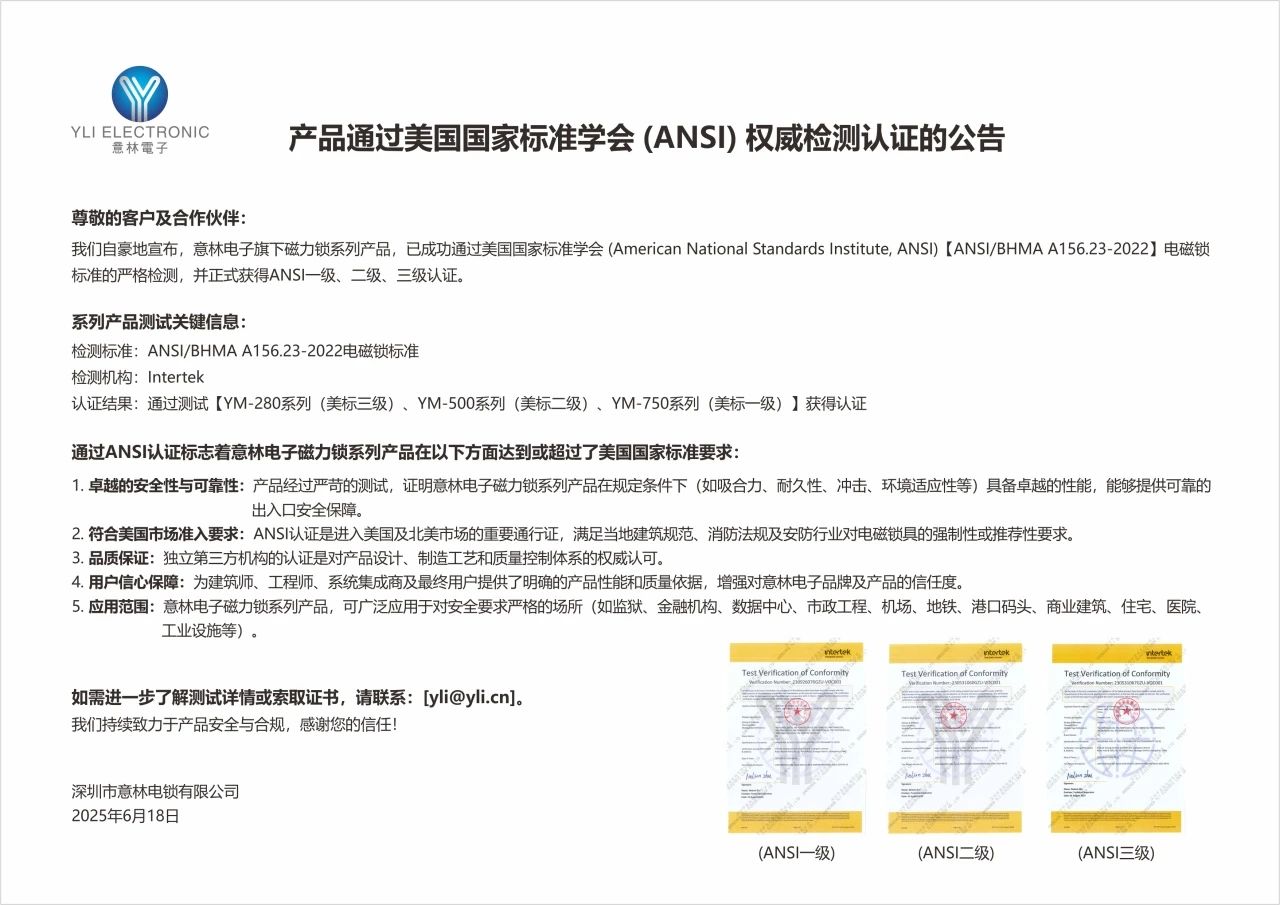 . 全球領先的電鎖器材制造商及著名安防品牌 有任何疑問請聯系:yli@yli.cn