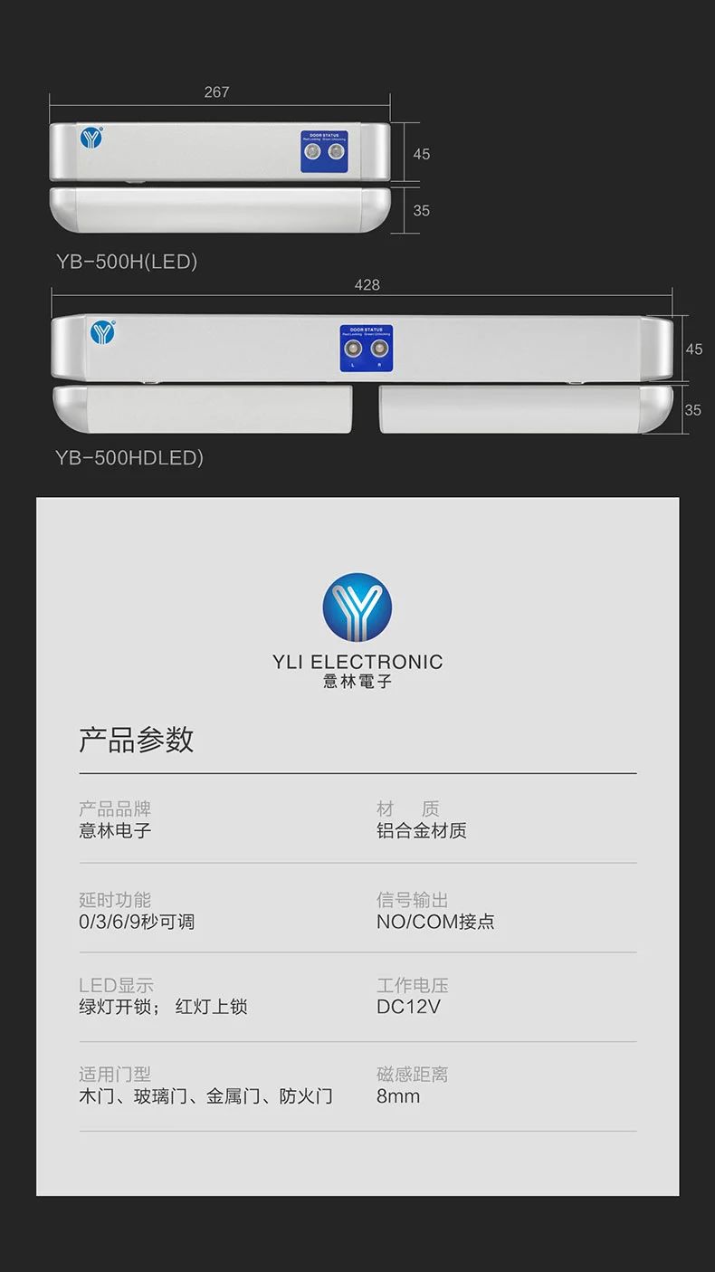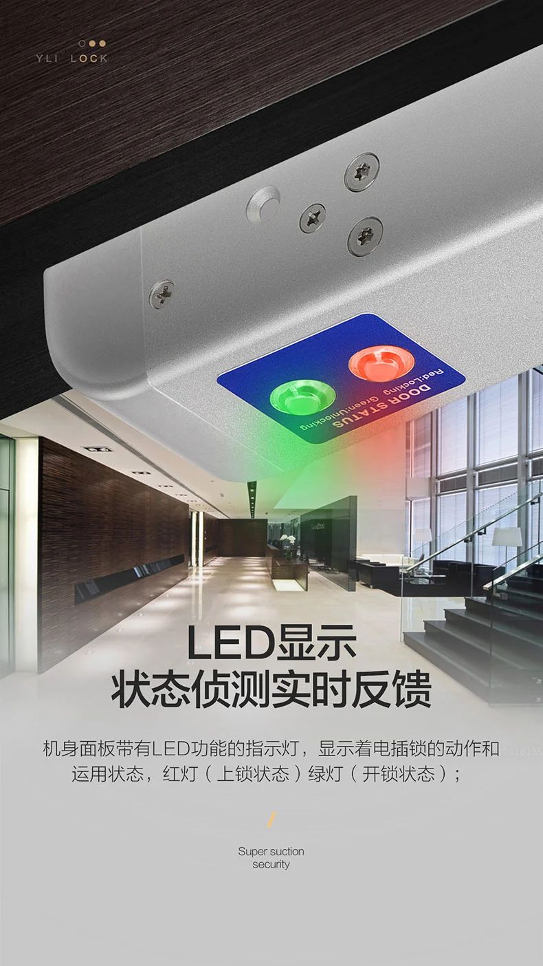 意林YB-500H(LED)明裝便捷式智能單門電插鎖,采用高強度鋁合金外殼,鋅合金鎖體,304不銹鋼實芯鎖舌,經CNC車床精加工而成,可承受1000kg沖擊。