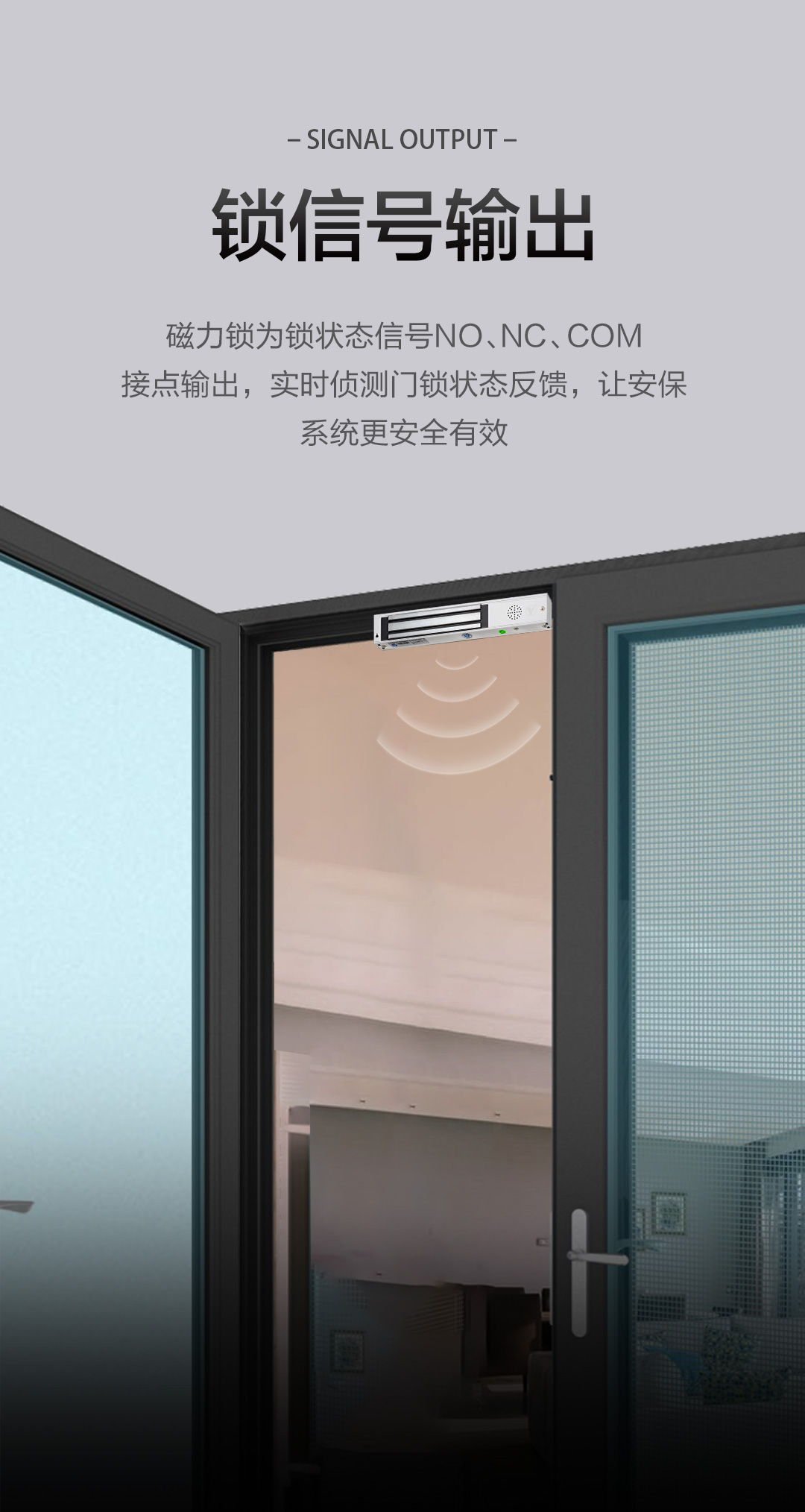 2、磁力鎖型號帶-S:代表帶鎖信號反饋功能。