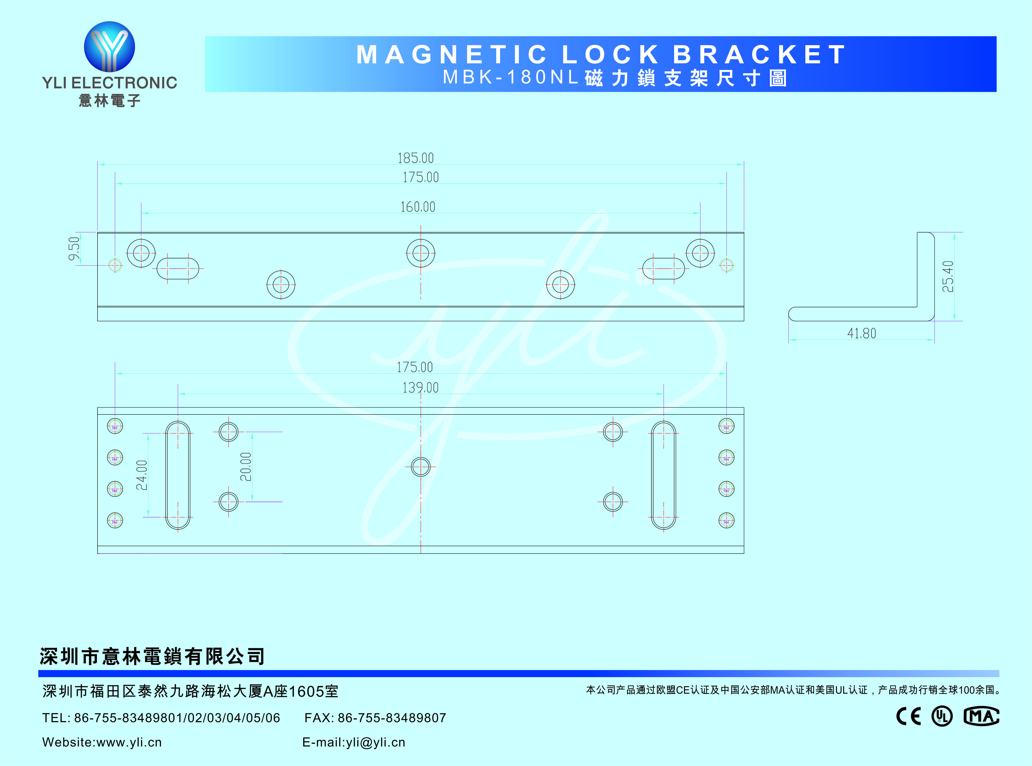 外形尺寸  L型支架:長185x寬41.8x厚25.4(mm)    (MBK-180NL)        L型支架:長175x寬39x厚28.5(mm)      (MBK-180NL-W)