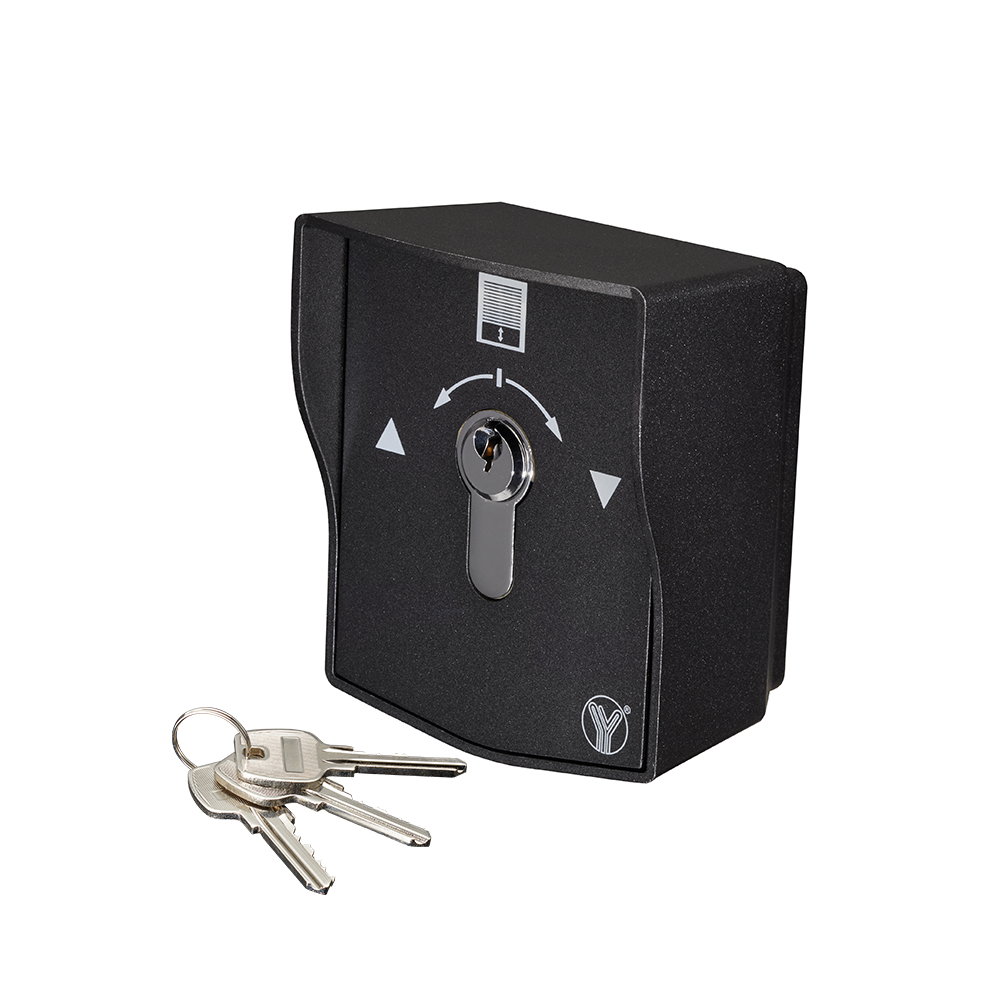 YKS-853A(EN)是一款明裝歐式卷簾門(電動門)開門匙掣開關,外殼采用全金屬結構,歐式匙掣采用黃銅鍍鉻工藝,內置兩組三觸點耐用型開關,防雨水,防拆設計,十分堅固耐用。卷簾門開門匙掣開關安裝在室外,串聯或并聯在電源供應器與卷簾門(電動門)電機之間,當遙控開門設備故障時使用開門匙掣開門及開門匙掣鎖匙只授權給管理人員使用,是商業展廳,零售店,倉庫,工廠,車庫,卷簾門(電動門),指定配套設備。