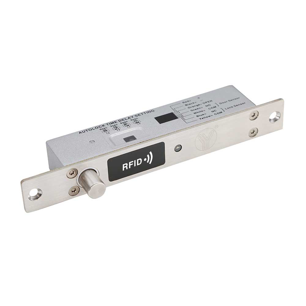 鎖舌上鎖后,自動切斷干簧管偵察功能,避免人為截斷門閂板的磁鐵與鎖體干簧管的感應,使電鎖產生錯誤動作而開鎖。