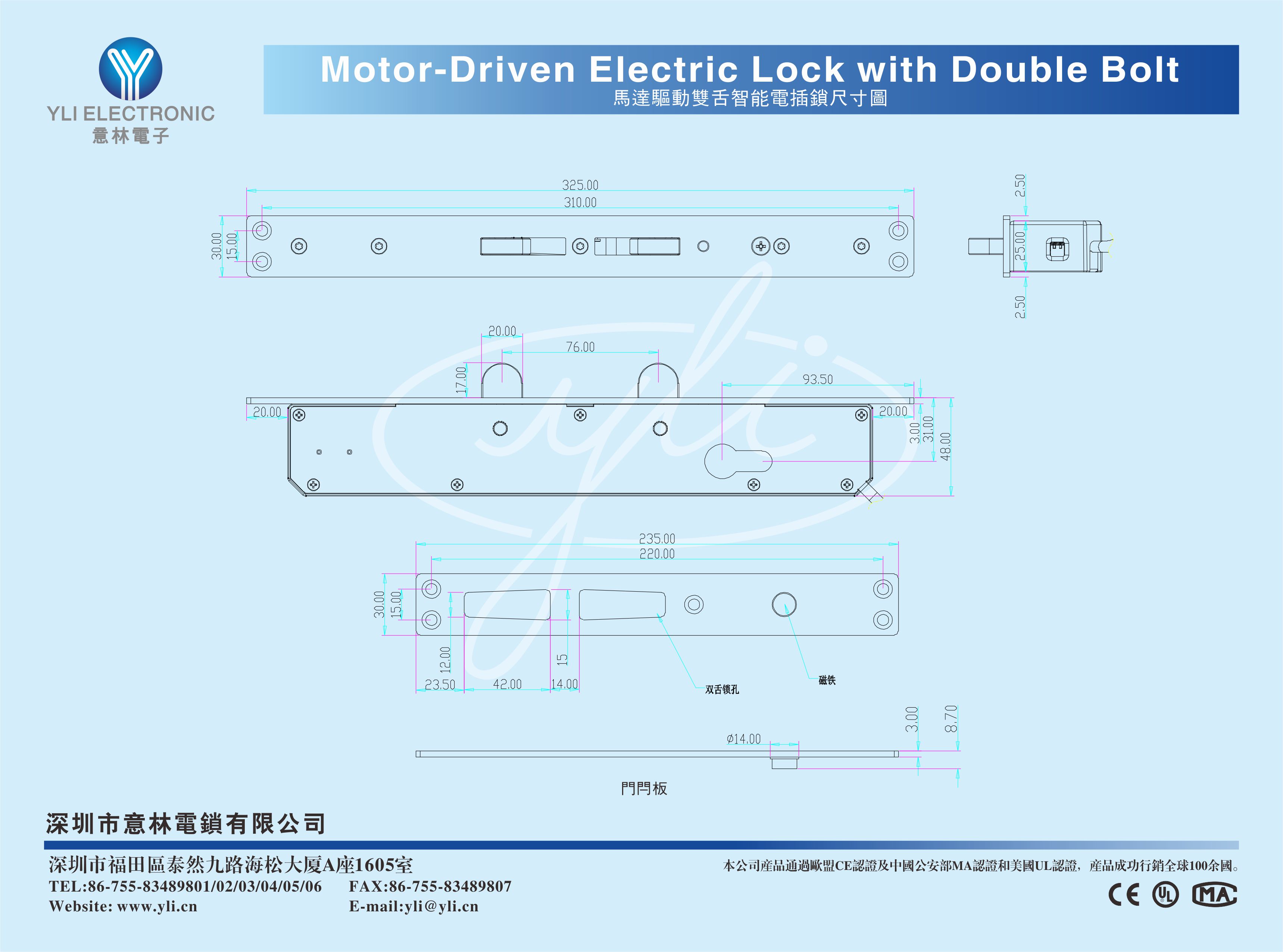 馬達驅動雙舌智能電插鎖