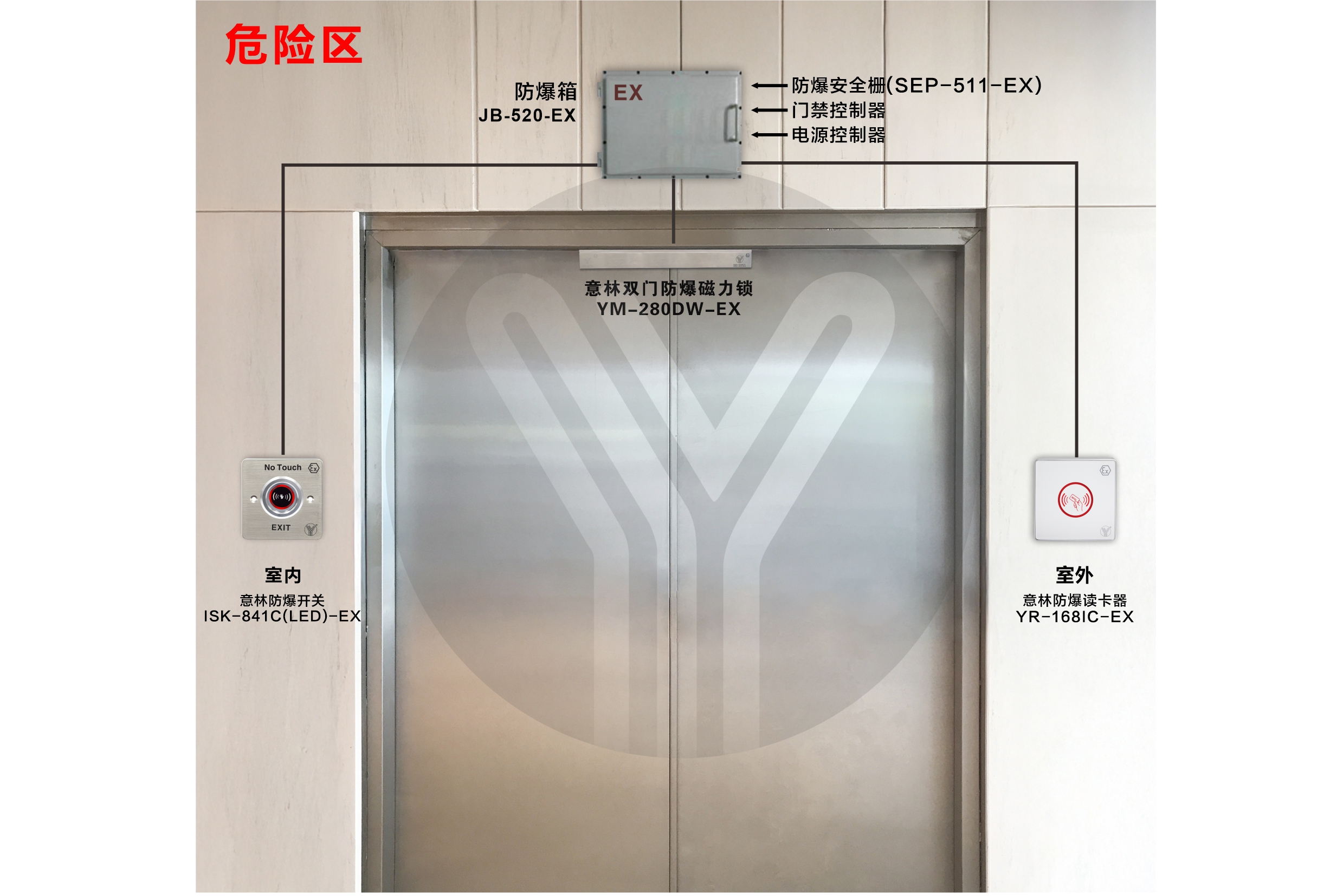 適用場所:爆炸氣體環境危險區消防通道位置,配合防爆門禁配套使用
