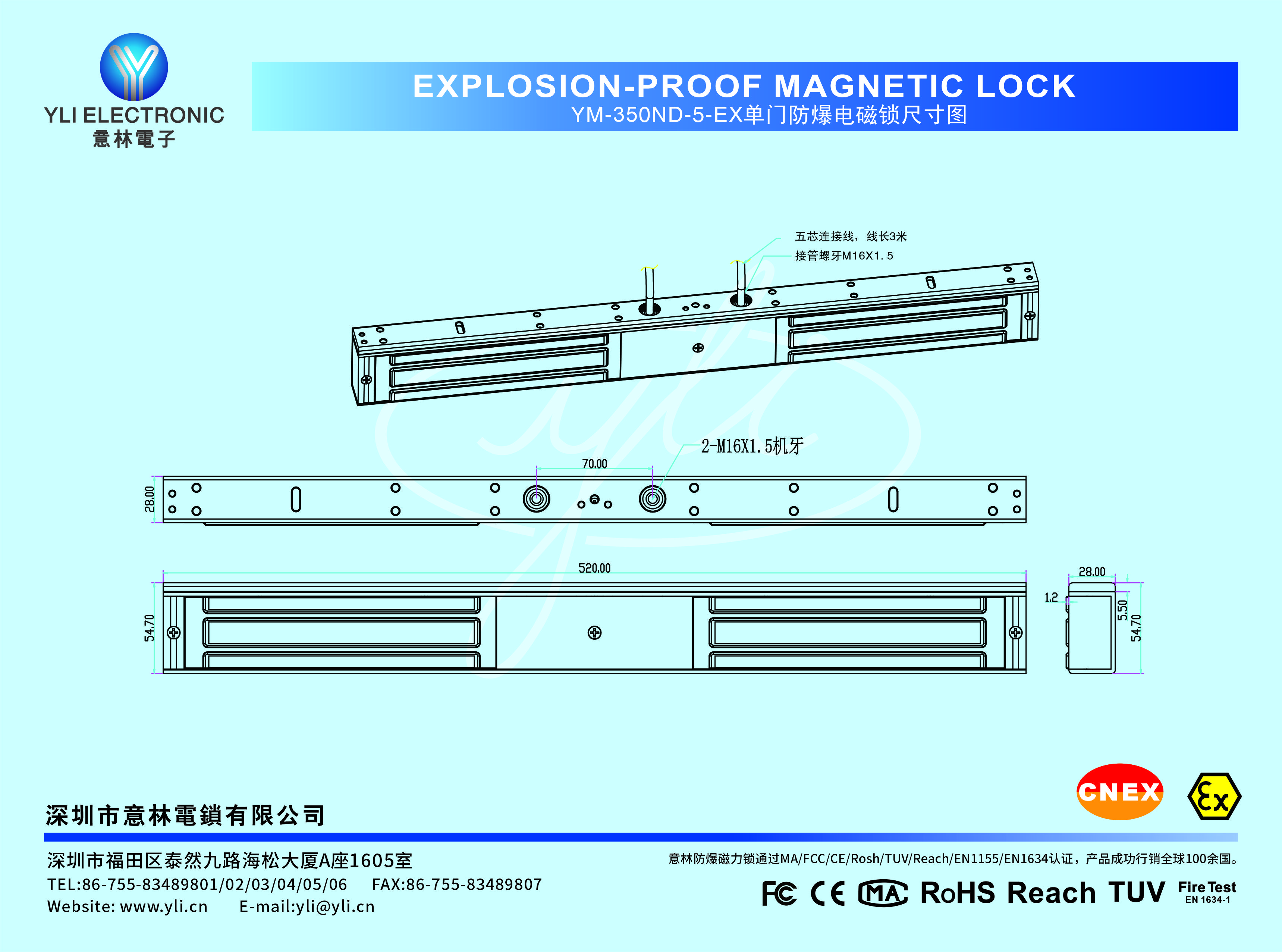 鎖體阻燃: 使用阻燃樹脂灌封(等級:V-0)