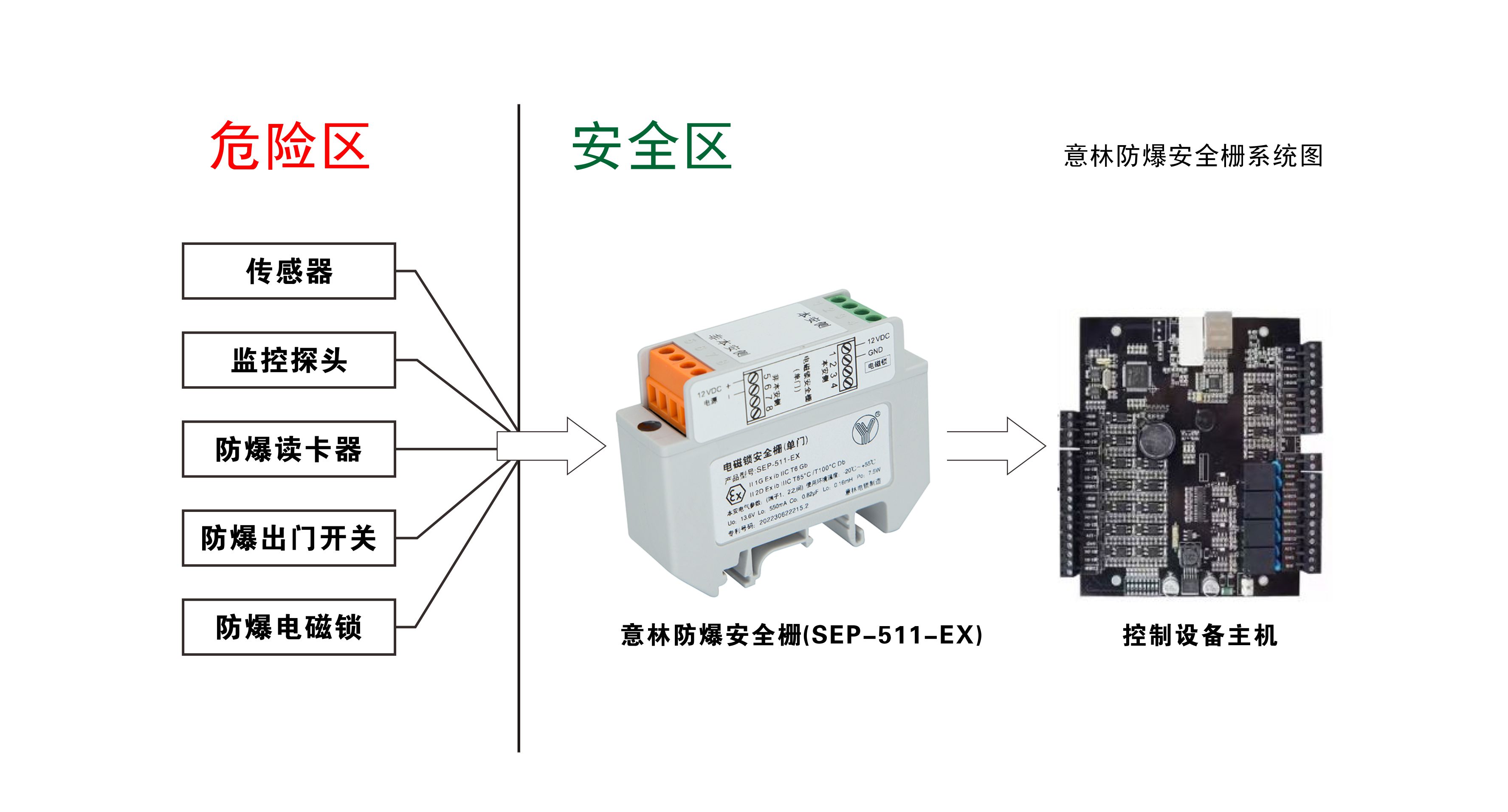 防爆安全柵電路中采用快速熔斷器、限流電阻或限壓二極管以對輸入的電能量進行限制,從而保證輸出到危險區的能量。